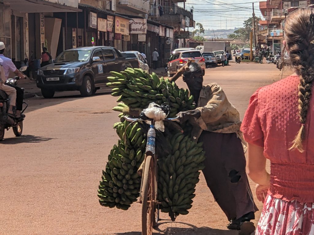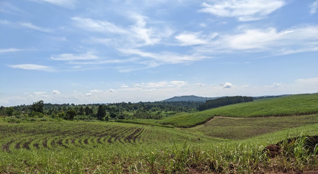 Uganda is quite lush, with a huge variety of tall green trees, ranging from banana trees to pine trees, even some cactus, and just about everything in between. The countryside has many rolling hills with fields of green sugarcane, corn, and tea. Our driver said the soil is so fertile, you just throw a seed out anywhere and it will grow on its own.