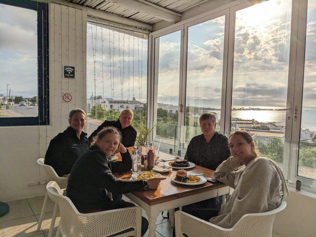 Gianna is drinking a delicious rooibos latte, which she and I drank often here. Rooibos is ubiquitous in cafes and restaurants, and it’s prized for its medicinal qualities as well. According to nationalgeographic.com, “There is only one place in the world where rooibos grows wild or can be cultivated—the Cederberg region, a rugged mountainous area two hours northeast of Cape Town, which has the climate, soil, and conditions conducive to the healthy growth of the red bush.” Cederberg is just a couple hours drive east of where we stayed in Saldanha.