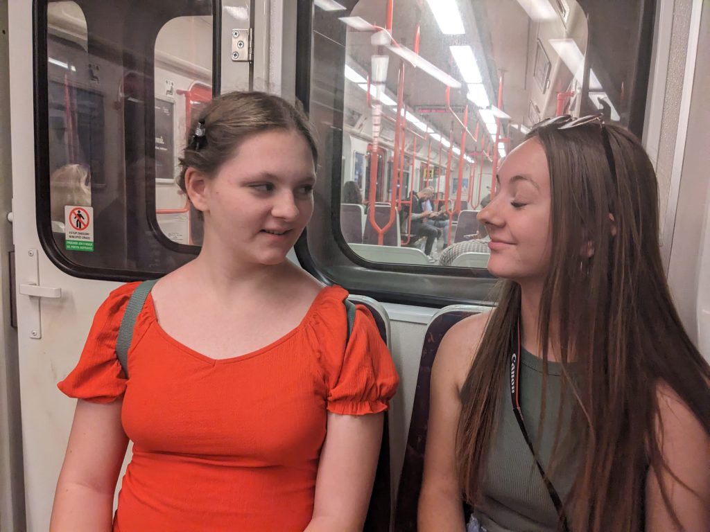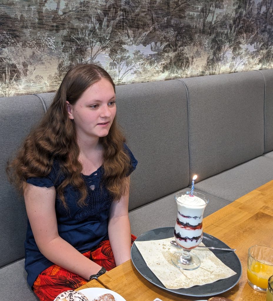Our hotel restaurant made Jessica’s traditional birthday breakfast, upon our request. The parfait is made layered with strawberries, whipped cream with sliced bananas, and blueberries, for a red, white, and blue Independence Day treat.Gianna trying to navigate the city.