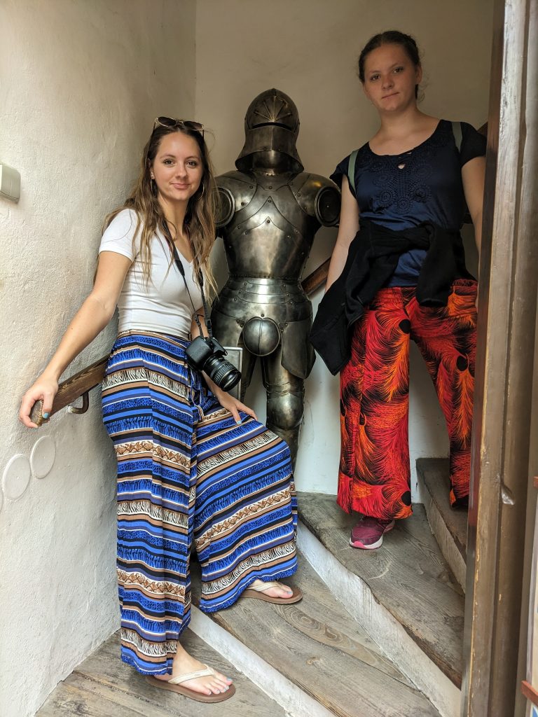 We visited the Konapiste Castle, where Archduke Ferdinand once lived. The girls went on a tour of his hunting hall where they saw many mounts of a great deal of animals. Eric and I went on a different tour of one of the wings in the castle in which they kept armor and Archduke Ferdinand’s collection of St. George dragon slaying artwork. They had peacocks roaming free, as well as George the bear who is lives in the moat. Unfortunately, it was pretty hot so George must have been hiding in a cool place, because we never saw him.