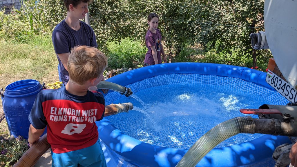 After filling the concrete cistern (the only source of water for the household), the kids fill the pool with the water that’s left in the water truck. The truck usually comes twice a week to deliver this fresh well water.