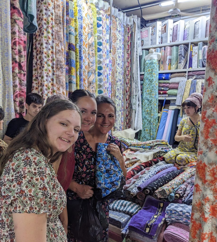 Jessica, Gianna, and Allison picked out fabrics at the market and had some custom outfits made.