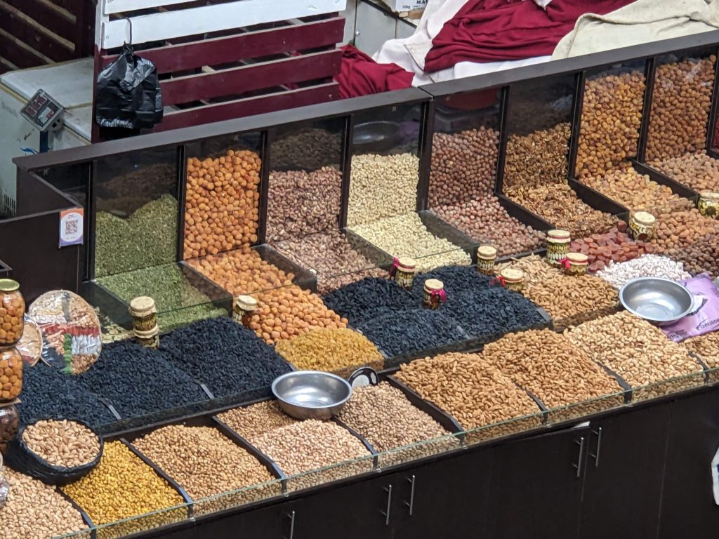 1. No, He wasn’t able to use the drone in most of the places we went. The bazaar had an upstairs area that went around the perimeter, and had some of it was open, with just railing, so I took the picture from that area.